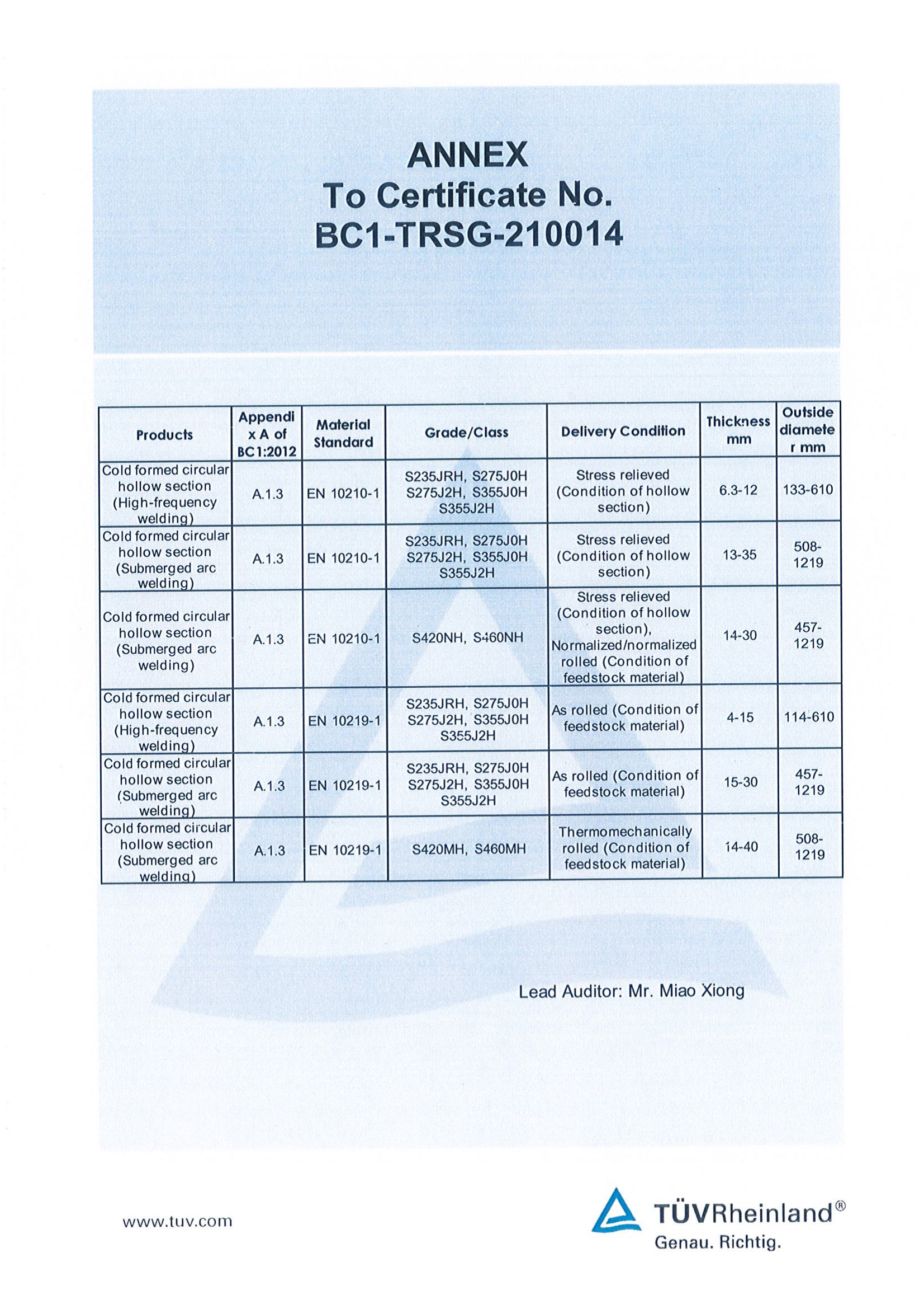 公司現(xiàn)有17條新型的自動化鋼管生產(chǎn)線,包括Φ73-660.4高頻直縫焊鋼管生產(chǎn)線14條、Φ406.4-Φ1422.4直縫雙面埋弧焊鋼管生產(chǎn)線3條,并配備有一條防腐生產(chǎn)線,可進行3PE、2PE、FBE、2PP、3PP防腐處理,同時還可提供鋼管深加工服務。公司擁有先進的理化實驗室,可承擔鋼管的各項物理及化學檢測與試驗。公司先后取得了ISO9001質量管理體系認證、ISO14001環(huán)境管理體系認證、ISO45001職業(yè)健康安全管理體系認證、特種設備制造許可證、API5L和API2B認證證書、歐盟CE認證、俄羅斯GOST認證、中海油入網(wǎng)證、安全生產(chǎn)標準化二級企業(yè)等標準質量體系認證。